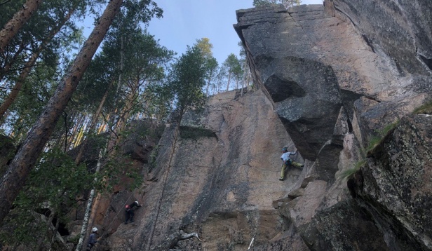 Kurze, knackige Sportkletterrouten, interessante Risse zum selber absichern und einige plattige Reibungsklettertouren findet man an diesem südost-ausgerichteten Granitfelsen.