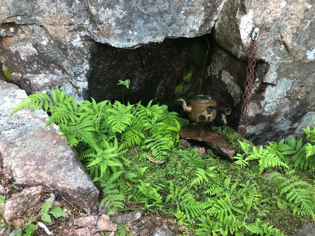 Am Fuss der Felsen sprudelt eine kleine Quelle und liefert frisches Kaffeewasser!